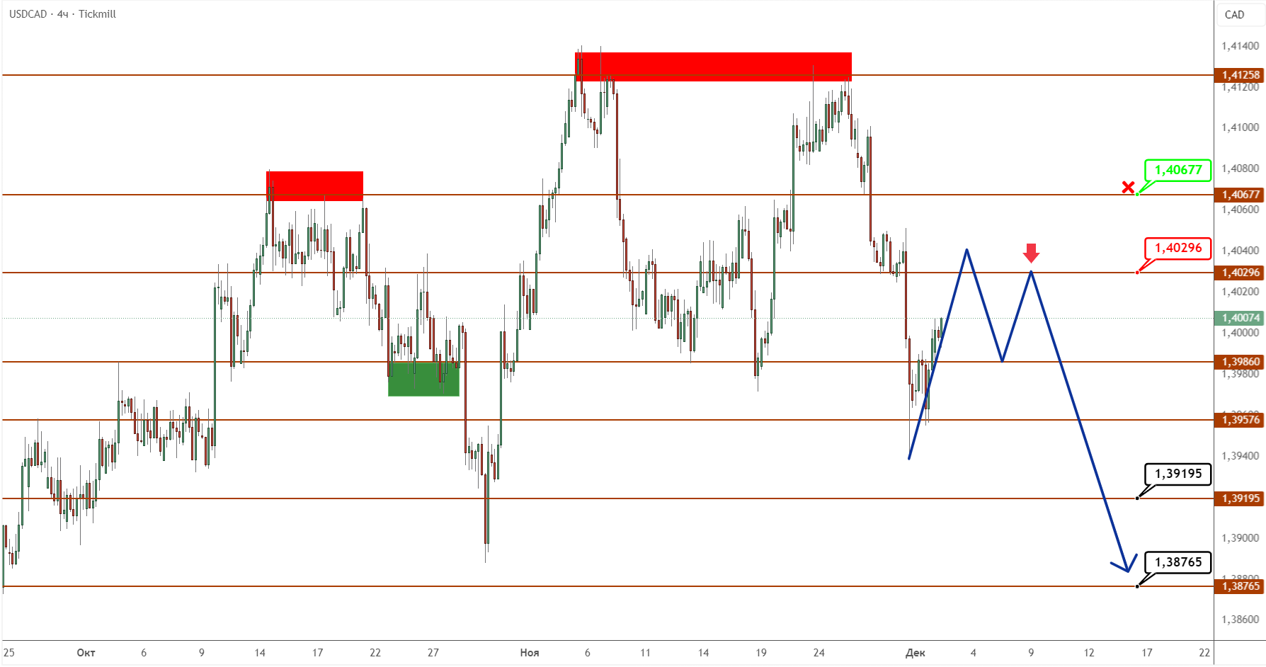 Сигнал на отмену текущего сценария будет получен в случае пробоя сопротивления и дальнейшего ухода цены выше разворотного уровня на 1,4067.